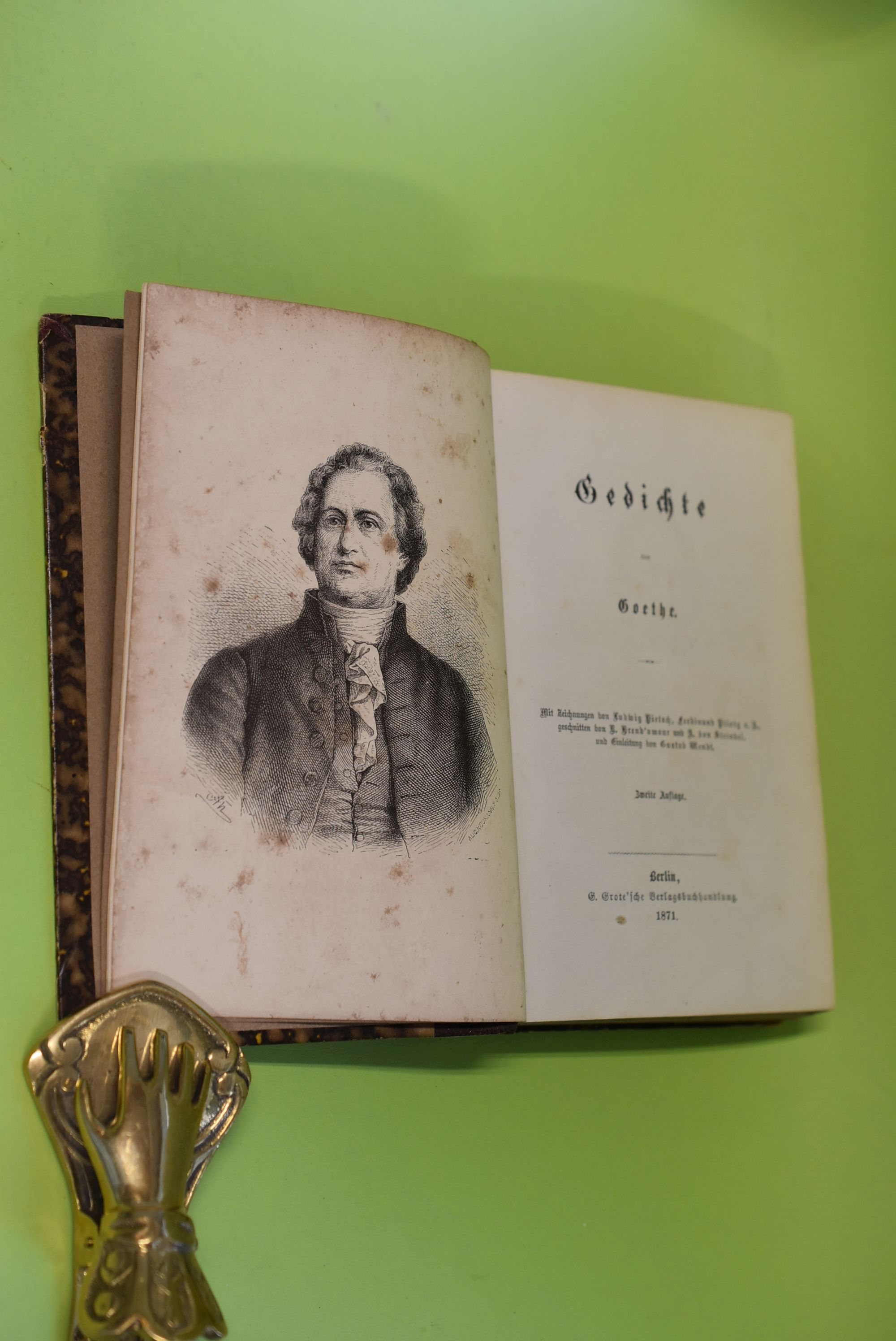 Zustand: Lederrücken und -ecken auf fünf Bünden, berieben. ExLibris. Die Bildtafeln sind alle deutlich fleckig, Frakturschrift --- Inhalt: Goethes Werke, Erste illustrierte Ausgabe, mit erläuternden Einleitungen, zweite verbesserte Aufgabe. Mit Zeichnungen von Ludwig Pietsch, Ferndinand Piloty u. A., geschnitten von R. Brend`amour und A von Steidel und Einleitung von Gustav Wendt. Frontispiz plus 16 Tafeln sowie Illustrationen ROS5-5
