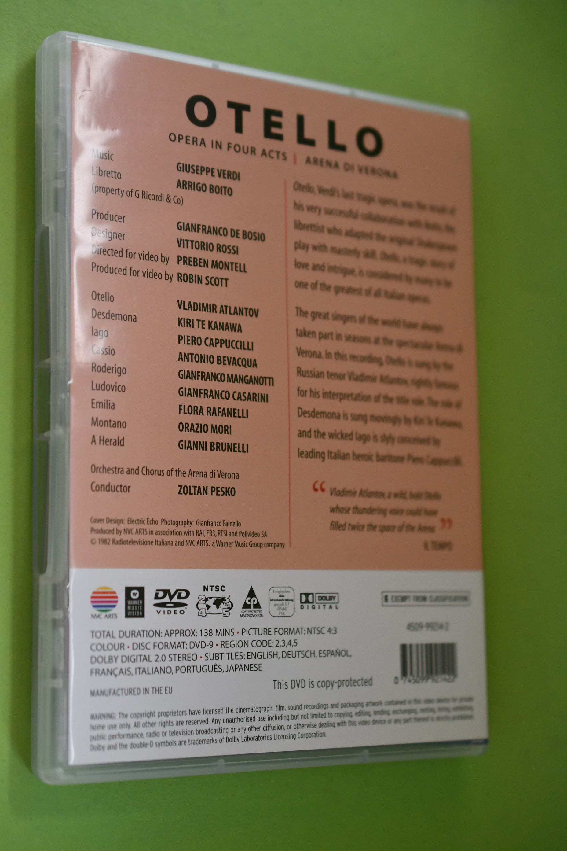 Zustand: DVD tadellos in Kunststoffhülle --- Inhalt: Gesamtlaufzeit 138 min, mit Kiri Te Kanawa, Piero Cappuccilli, Vladimir Atlantov. Gesungen wird italienisch, Untertitel in englisch, deutsch,spanisch, französisch, italienisch, portugiesisch, japanisch. T1-6 ISBN: 0745099921422