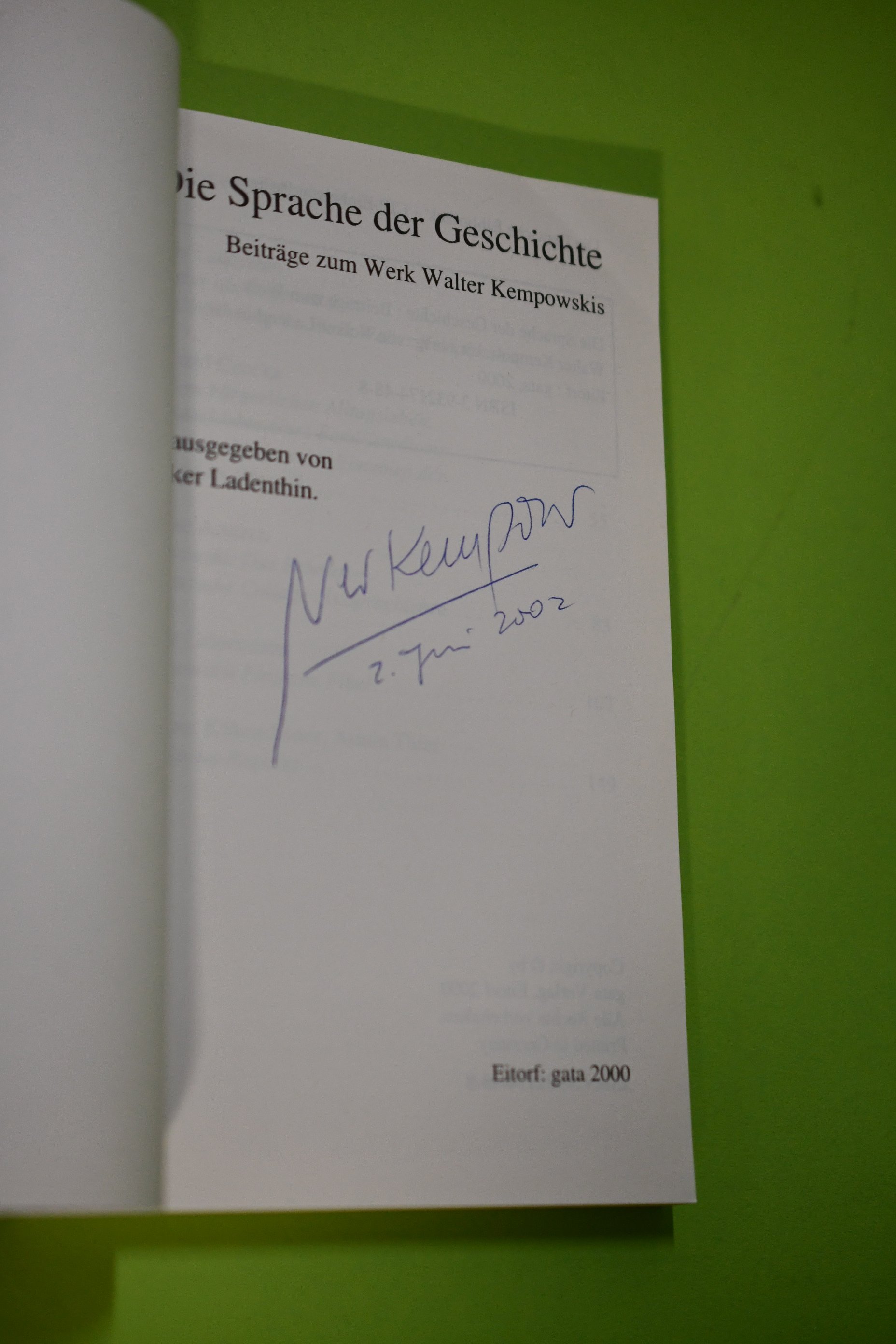 Zustand: Einband mit Druckstellen, sonst sehr gut- Mit Signatur von Walter Kempowski auf der Titelseite --- Inhalt: Beiträge von Volker Ladenthin, Eckehard Czucka, Helmut Arntzen, Widar Lehnemann und Günther Kükenshöner, Armin Thier PS5-8 ISBN: 9783932174483